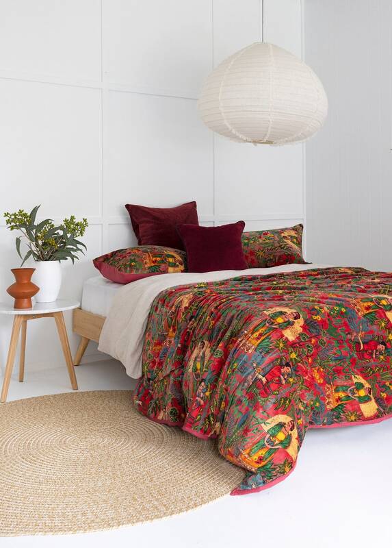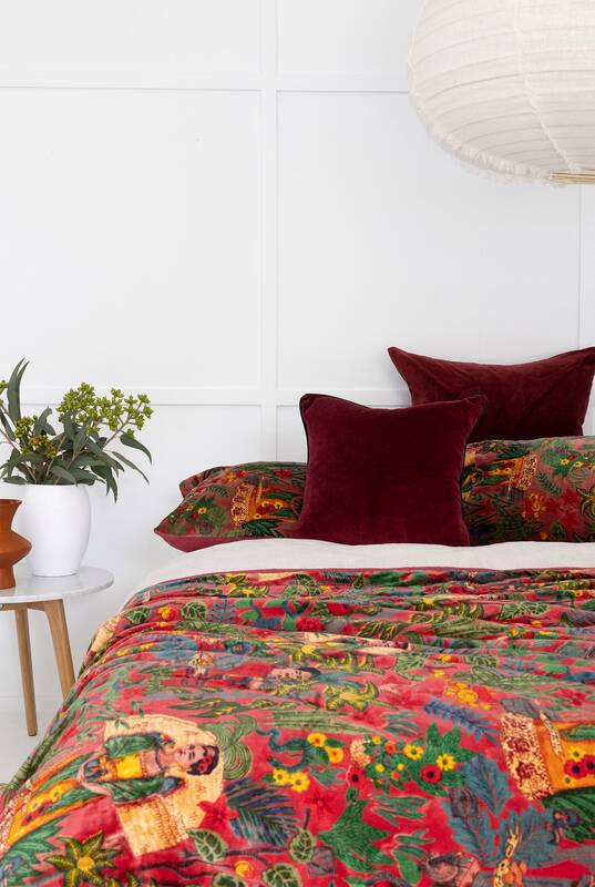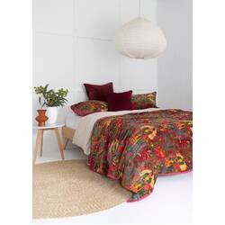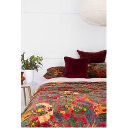 Velvet Frida Kantha Quilt Cotton Quilt Patchwork Quilt Handamade Floral Quilt Comforter Bedspread Blanket - Frida Red - Double