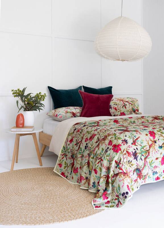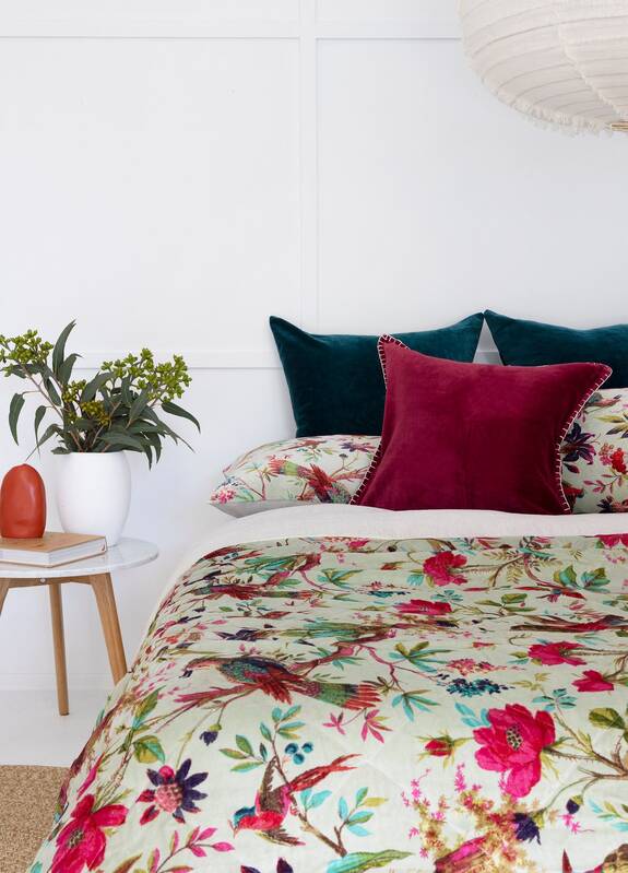This soft plush velvet quilt reverses to equally soft cotton fabric. The light weight quilt is precisely hand quilted giving each quilt a unique texture and tonal look. Reverses to plain cotton fabric at the back. Each quilt is pre-washed for a natural and soft look. This cozy cotton quilt can be used as a bedspread, coverlet or blanket all year long.