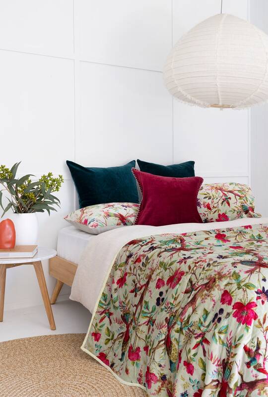 This soft plush velvet quilt reverses to equally soft cotton fabric. The light weight quilt is precisely hand quilted giving each quilt a unique texture and tonal look. Reverses to plain cotton fabric at the back. Each quilt is pre-washed for a natural and soft look. This cozy cotton quilt can be used as a bedspread, coverlet or blanket all year long.