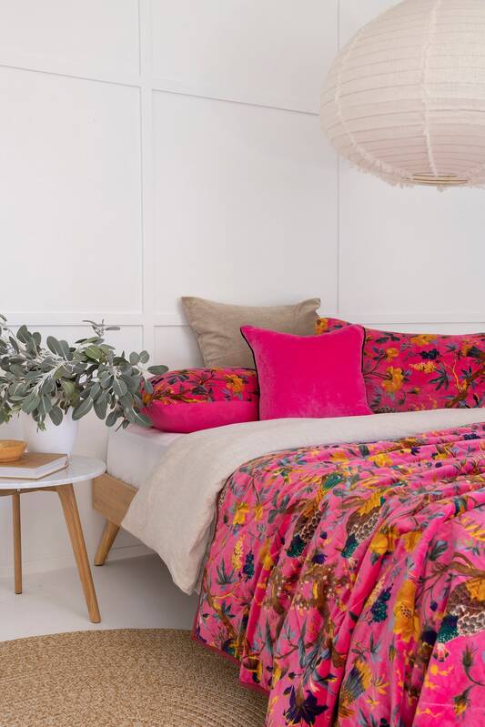 This soft plush velvet quilt reverses to equally soft cotton fabric. The light weight quilt is precisely hand quilted giving each quilt a unique texture and tonal look. Reverses to plain cotton fabric at the back. Each quilt is pre-washed for a natural and soft look. This cozy cotton quilt can be used as a bedspread, coverlet or blanket all year long.