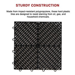 Made from impact-resistant polypropylene, these hard plastic tiles are designed to resist staining from oil, gas, and household chemicals. Their sturdy construction allows them to withstand heavy rolling vehicle loads, making them ideal for garage floors.