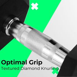 - Optimal Grip: Designed for your comfort, the grip comes with a textured Diamond Knurling to help you firmly hold onto the dumbbell during a sweaty workout.