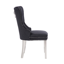 Victoria 2X Dining Chair Black Velvet & STAINLESS STEEL Legs
