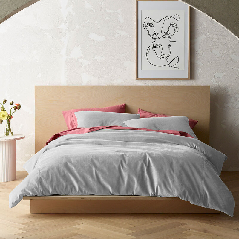 Vintage Design Homewares Dove Grey Cotton Corduroy Quilt Cover Set Double