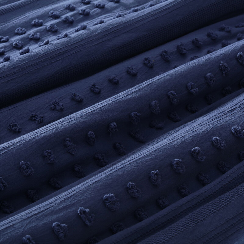 Change the look of your bedroom by adding some texture with Sans Sovci Bijou Blue Cotton Quilt Cover Set by Vintage Design Homewares. This quilt cover set is made from 100% cotton, keeping you comfortable all night long. Our design features a chenille & waffle pattern across the quilt cover & pillowcases adding that chic, minimalist style. Complete the look with matching European Pillowcases at an extra cost.