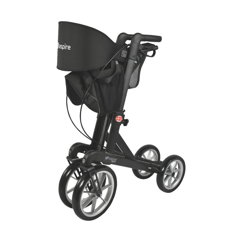 The Aspire Vogue Adventure Seat Walker is a sturdy mobility aid built for users weighing up to 200kg. It features robust Large Multi-Terrain Wheels for excellent durability and stability on various surfaces, including both on and off the road. The front wheels measure 11 inches, while the back wheels are 9 inches in size.