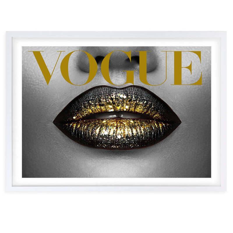Wall Art's Gold Vogue Lips Framed A1 Art Print