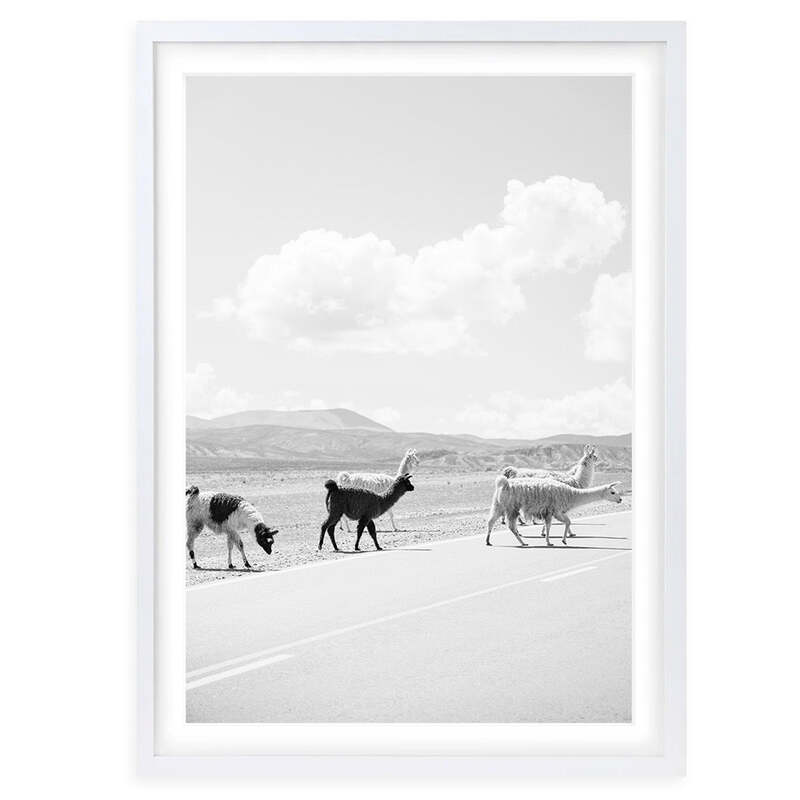 Wall Art's Llamas Crossing Large 105cm x 81cm Framed A1 Art Print