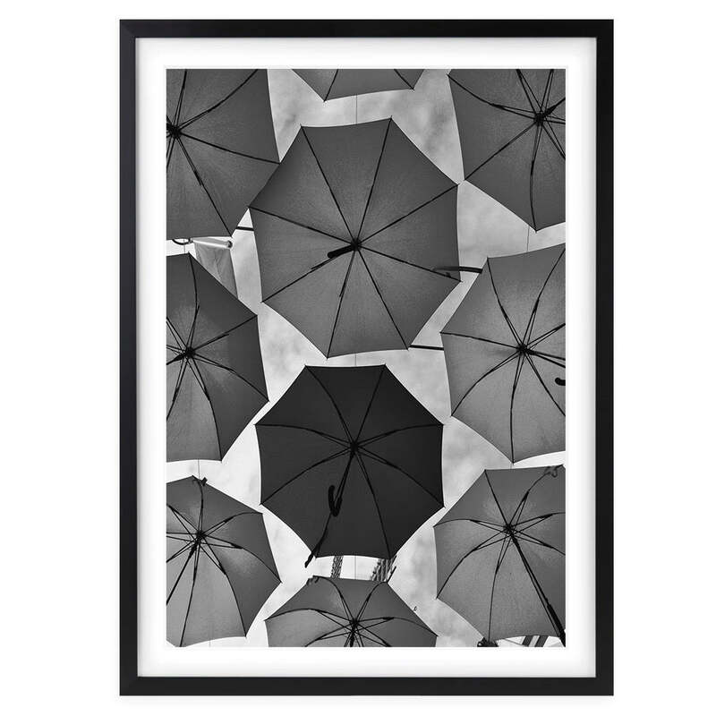 Wall Art's Monochrome Umbrellas Large 105cm x 81cm Framed A1 Art Print