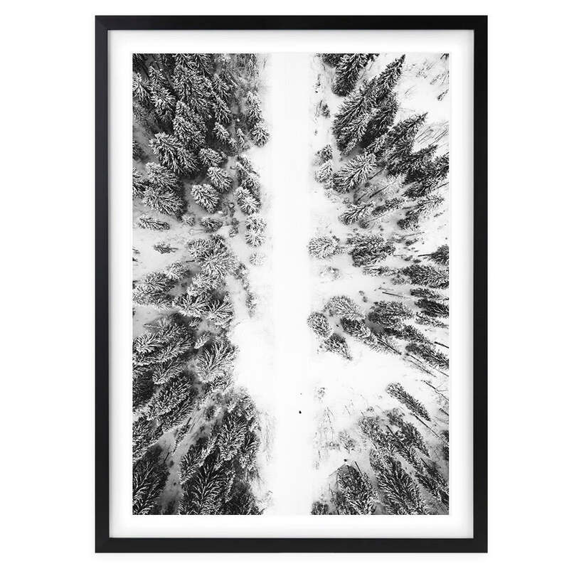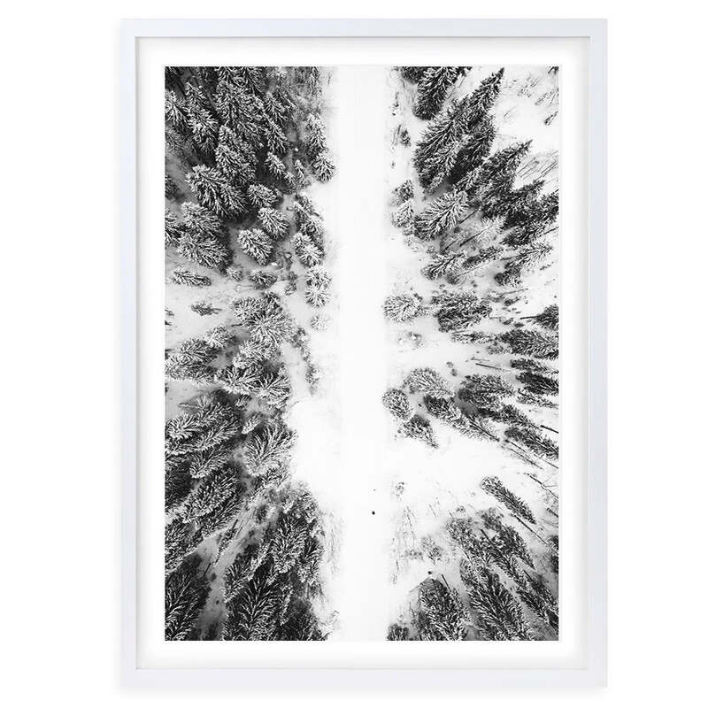 Wall Art's Snowy Forrest Road Large 105cm x 81cm Framed A1 Art Print