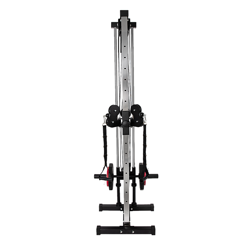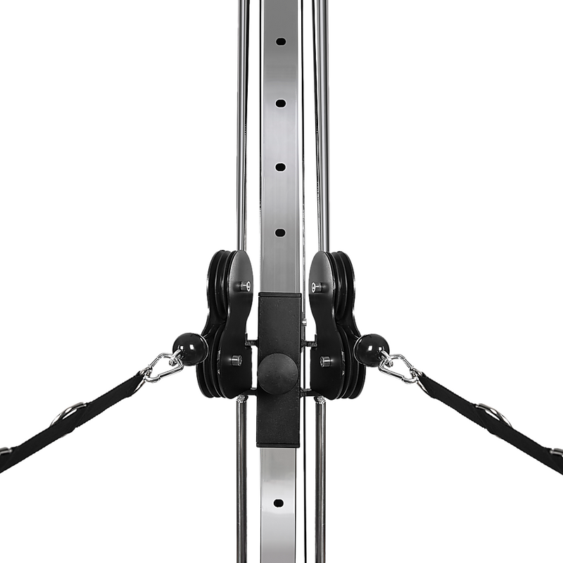 Made from strong, steel frame with a protective powder-coated finish that fends off scratches and rust, this cable tower is equipped with two premium pulleys that can be effortlessly adjusted to varying heights, facilitating a wide spectrum of exercises, from cable crossovers to lat pulldowns.