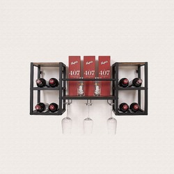 Designed with a vintage industrial flair, this wall-mounted wine rack combines a sturdy matte black iron frame with a rustic brown partial wood shelf. Its charming farmhouse accent adds a touch of elegance to your home, kitchen, dining room, or countertop. It's not only a practical rack but also makes a thoughtful gift for wine lovers.