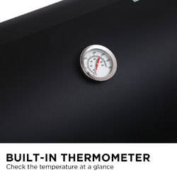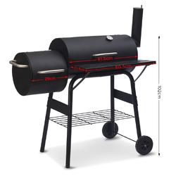 This offset smoker comprises a sturdy steel frame, side firebox and a spacious cooking chamber. It has a tight seal to ensure that the aroma and flavours are absorbed back into the food. The chimney and firebox damper provide good ventilation and make it easier to control the heat. There is also a lid thermometer to help you monitor the temperature.