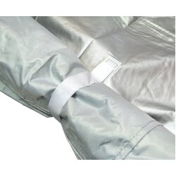 These covers are designed to be easily fitted with elastic hems around the front and rear as well as adjustable straps which pass under the body from side to side. The straps are adjustable (to around 2.8m) and have quick-release / fitting clips to make securing the cover quick and easy.