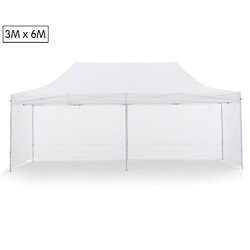 Our strong triangulated frame system means this marquee comprises only 2 main parts. The frame is one complete assembly which expands to 3x6m and the roof is fitted over the frame as it unfolds, giving you instant cover from rain or sun! You can then set the height of the legs and fit the walls if required. When you're done you can just as easily fold the frame and roof away into the carry bag we provide, ready for transport or storage. The entire setup process will take 2 or 3 people just a few minutes!