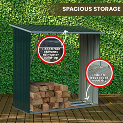 It also has a sloped design to drain rainwater, keeping your wood nice and dry during the rainy season.