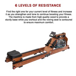 The machine has 6 levels of resistance. Find the right one for your current level of fitness and increase it as you strengthen and tone to continue boosting your fitness. The machine is made from high-quality wood to provide a sturdy base while you workout and the rowing seat is contoured to ensure maximum comfort.
