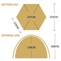 Inner Tent Dimensions: 129 (L) x 247 (Diagonal) x 138 (H) cm