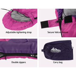 Weisshorn Sleeping Bag 136cm Kids Camping Hiking Winter Pink