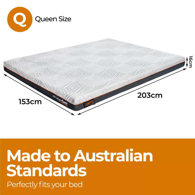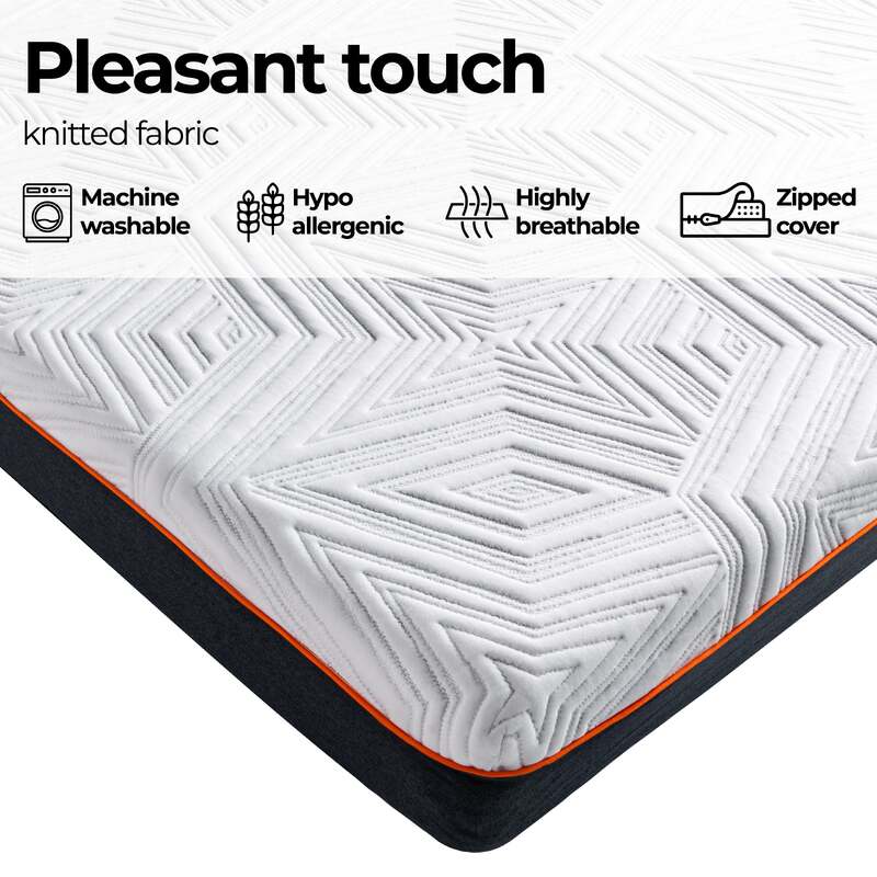 Immerse yourself in unparalleled comfort and support with the WhisperCool Gel Memory Foam Mattress. Designed with an innovative combination of three foam layers, this mattress guarantees an unparalleled sleeping experience. The top cool gel memory foam layer efficiently regulates body temperature, ensuring a cooler night's sleep. The middle and bottom high density foam layers offer superior support and adapt to your body????s unique shape, providing relief from pressure points. To top it all, this mattress ensures undisturbed sleep even when you share your bed, and the firmness level is tailored to the preferences of many Australians. Furthermore, its hypoallergenic properties and resistance to dust mites make it an excellent choice for a healthier sleeping environment. Encased in a premium knitted fabric, the zipped cover can be conveniently removed for easy cleaning. Choose from a range of sizes to find the perfect fit for your space.