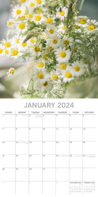 Wild Flowers - 2024 Square Wall Calendar 16 Months Floral Planner Christmas Gift