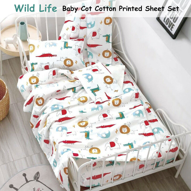 Wild Life Lion Elephant Crocodile Baby 100% Cotton Printed Sheet Set Cot Size