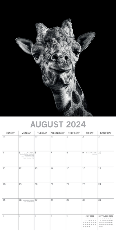 Wild Portraits - 2024 Square Wall Calendar 16 Months Black & White Planner Gift