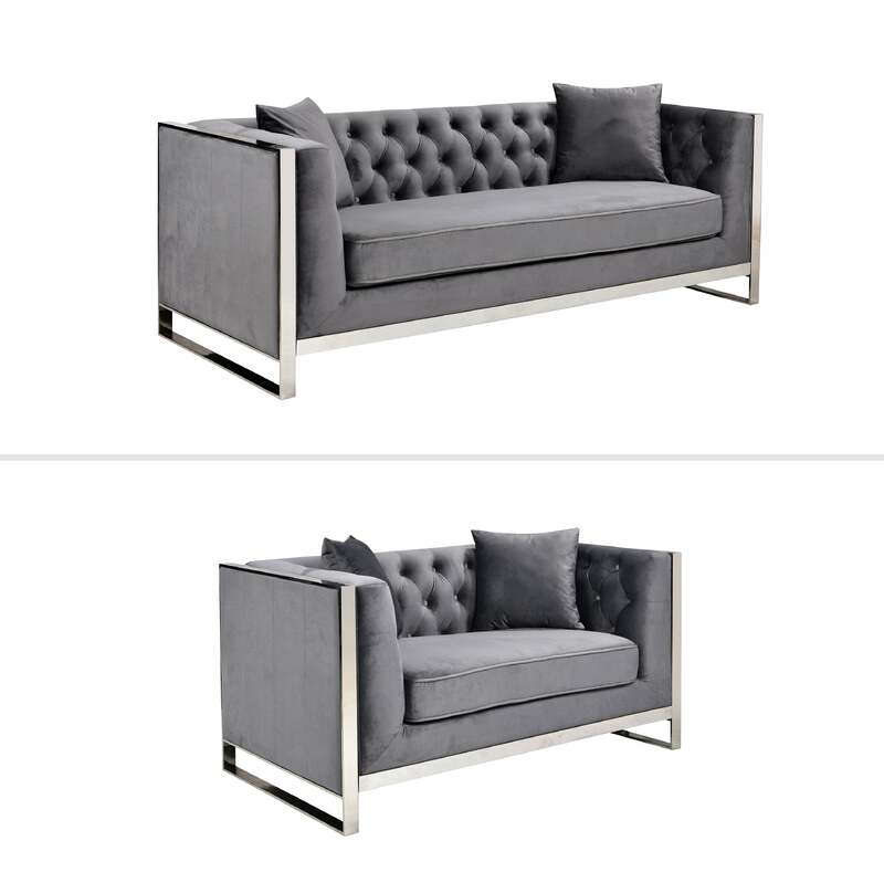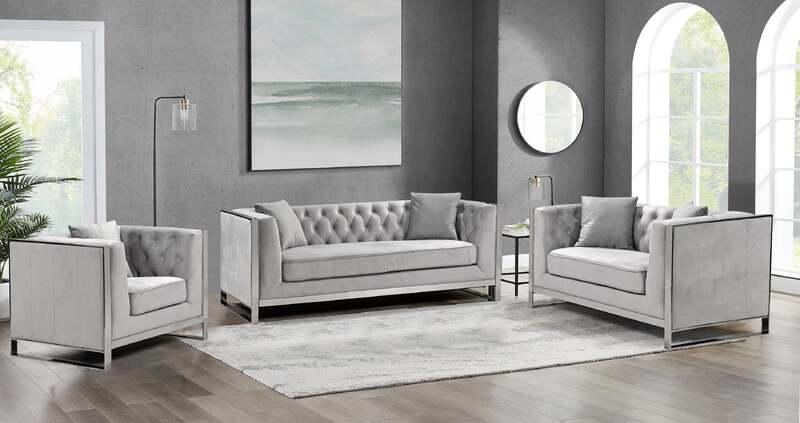 Introducing William Lounge Set of 3, the perfect way to create a stylish and sophisticated look in any living space. This luxurious set is upholstered with velvet black fabric and offers superior comfort as well as impeccable style. The angled legs add an attractive modern touch, while the tufted back gives it an airy and spacious feel. Each seat is generously sized for plenty of relaxation, and it can easily accommodate one or two people for entertaining. Whether you're looking for a cozy spot to curl up with a book or have guests over, this stylish set will provide the perfect balance between comfortable seating and timeless style. With its sumptuous velvet fabric that provides outstanding softness and luxury, the William Lounge Set of 3 makes staying in much more enjoyable.