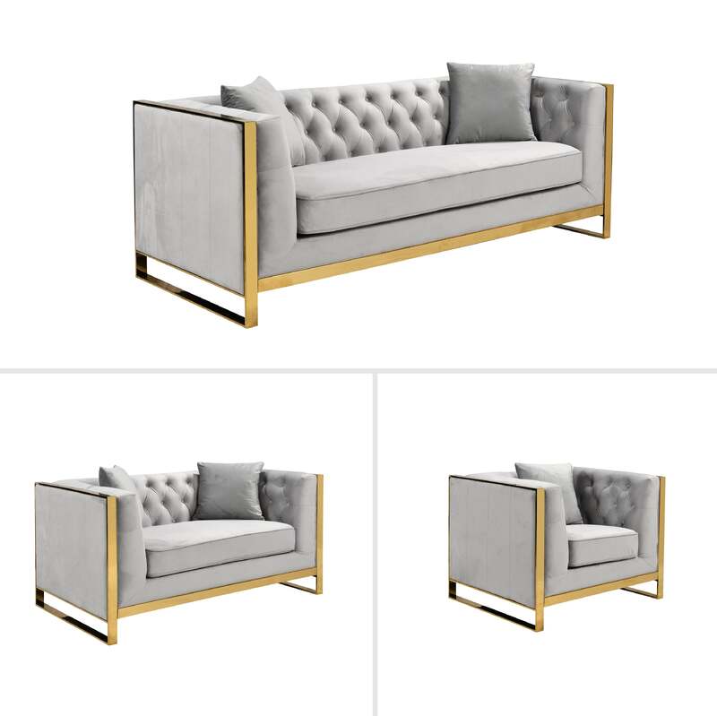 William Lounge - Light Grey Velvet - Gold Trims