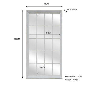 Window Style Mirror - White Rectangle 100cm x 200cm