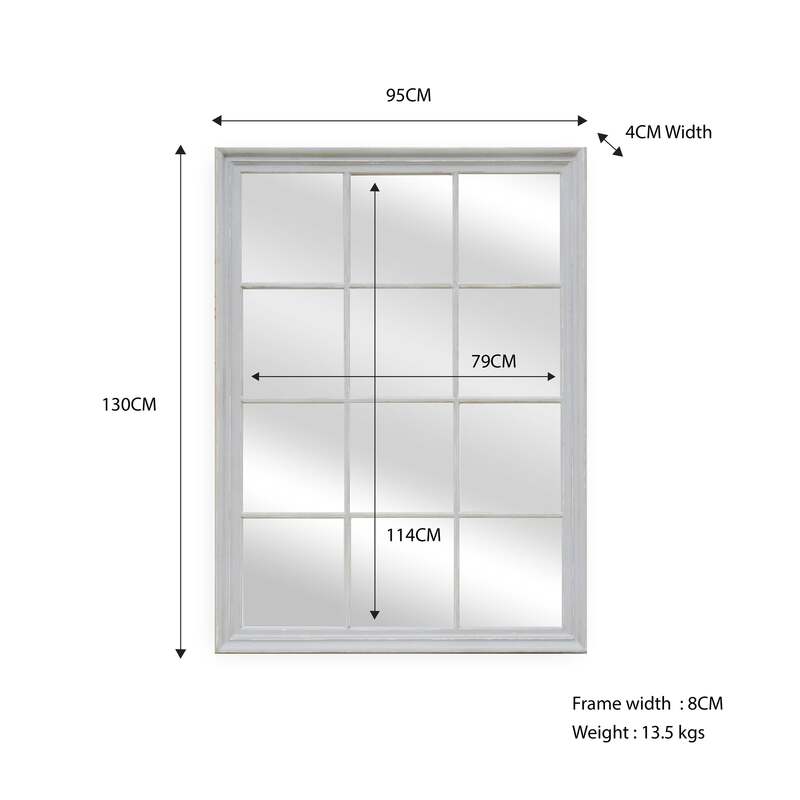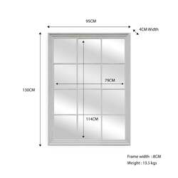 The Window Style Mirror - White Rectangle 95cm x 130cm is a beautiful and unique addition to any home decor. The mirror measures 95cm x 130cm and is made from high-quality materials, including wood and mirror.