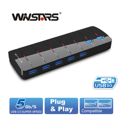 Winstars WS-Up072/7 Port USB 3.0 Hub with Power Adapter can connect up to 7 USB3.0 devices to any USB2.0 or 3.0 compatible computer. This USB hub is easy to use and connect, with an attractive, solid, compact design and per port LEDs.