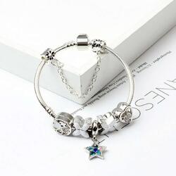 Product Name: Women Silver Plated Bracelet Snake Chain with Classic Bead Barrel Clasp and Blue Star Pendant