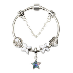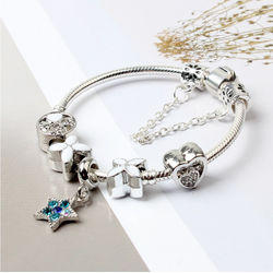 Product Name: Women Silver Plated Bracelet Snake Chain with Classic Bead Barrel Clasp and Blue Star Pendant