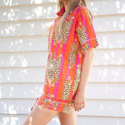 A stylish and cute pajama set to make it possible to enjoy anything life has to offer in leisure and comfort whether enjoying the morning coffee on the sofa or cozying up on a winter night watching a movie on Netflix.