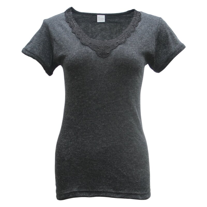 Womens Merino Wool Top Pants Thermal Leggings Long Johns Underwear Pajamas, Women's Short Sleeve - Black, 10-12