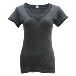 Womens Merino Wool Top Pants Thermal Leggings Long Johns Underwear Pajamas, Women's Short Sleeve - Black, 16-18