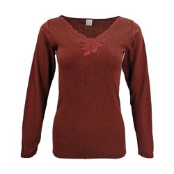 Womens Merino Wool Top Pants Thermal Leggings Long Johns Underwear Pajamas, Women's Floral Top - Burgundy, 14-16