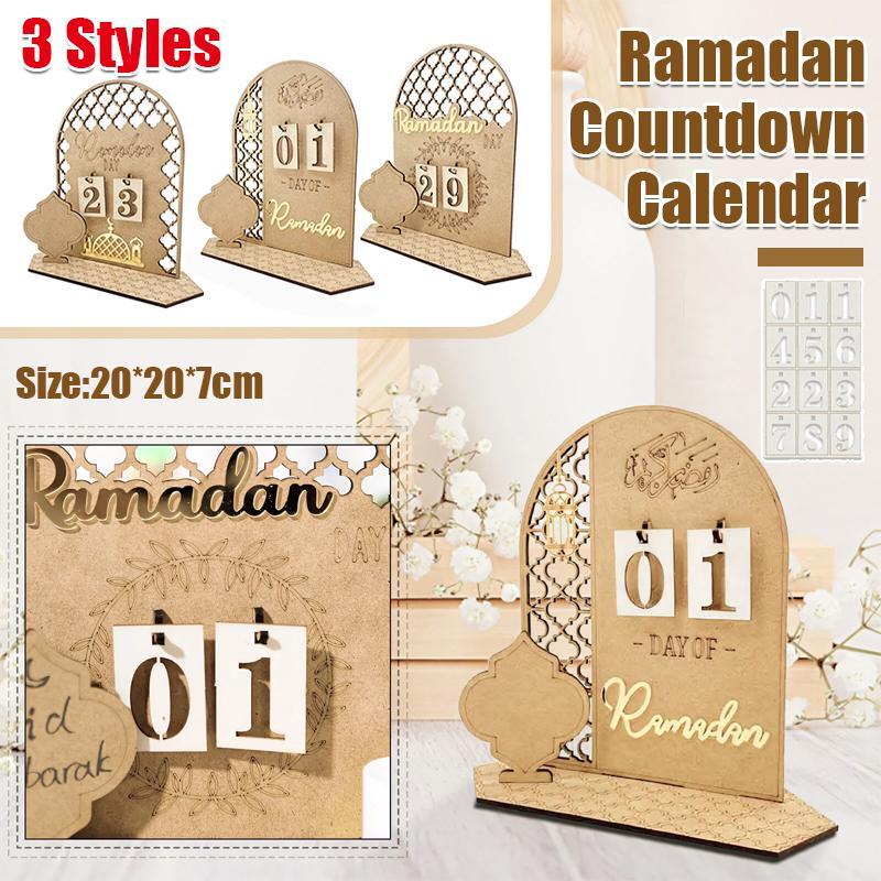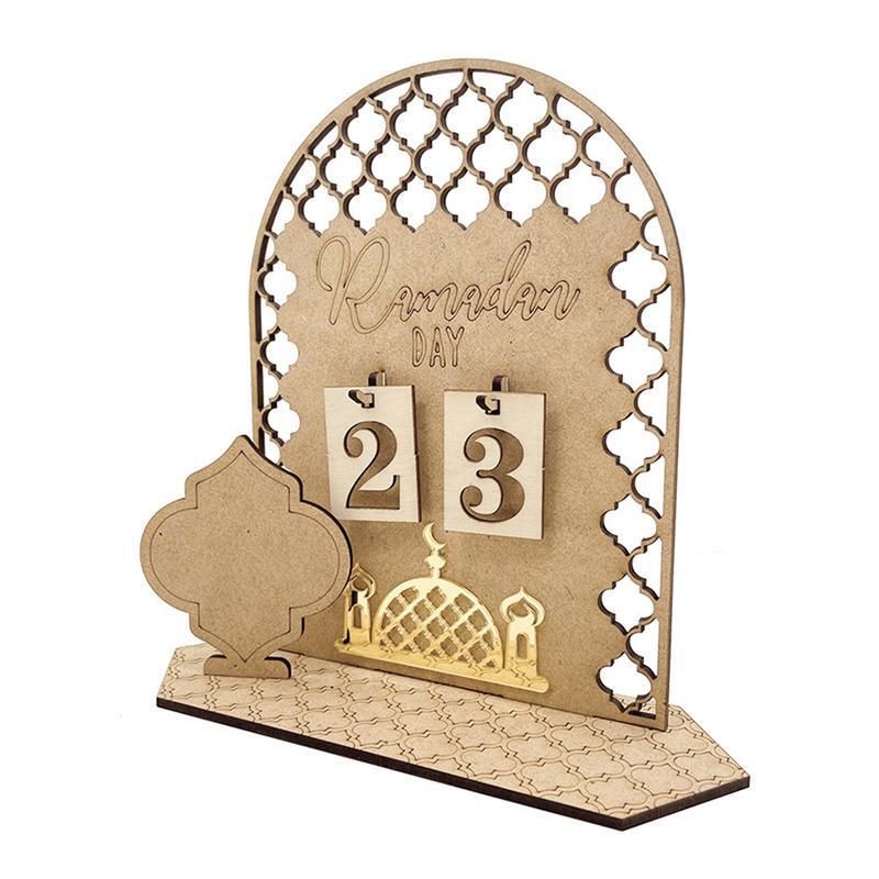 Wooden Eid Ramadan Countdown Calendar Ornament DIY Wood Crafts Party Decor #T