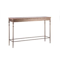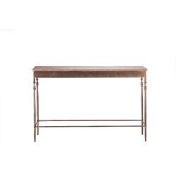 This sophisticated Wooden Iron Narrow Hallway Console Table with Finial Legs possesses a simple and sleek design that emits an antique air updated for today's interior. Its Brass Finished structure, and straight legs lends the table an urban distinction. Further the warmth of the Wood Top complements the overall piece, while the Finial Legged design emits timeless taste. With the combination of the Wrought Iron Legs and a Wood Top, this product promises a lasting quality.