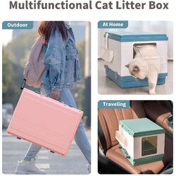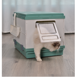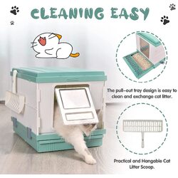 XL Portable Cat Toilet Litter Box Tray Foldable House with Handle and Scoop-Green