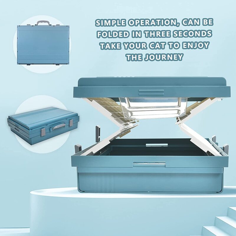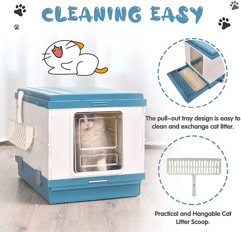 XL Portable Cat Toilet Litter Box Tray Foldable House with Handle and Scoop-Blue