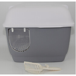 YES4PETS XL Portable Hooded Cat Toilet Litter Box Tray House with Handle and Scoop Grey