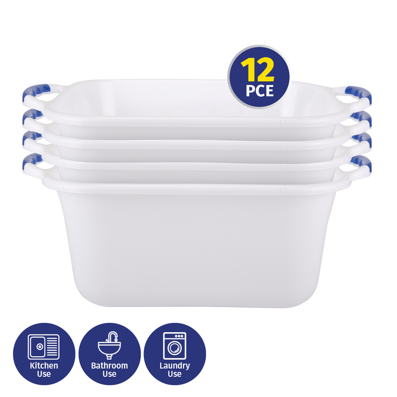Xtra Kleen 12PCE 12L Laundry Wash Basin Easy Grip Durable Handles 17 x 42cm