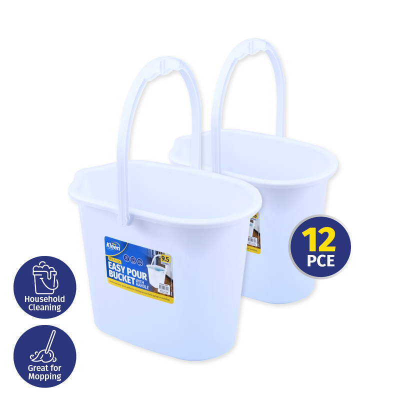 Xtra Kleen 12PCE 9.5L Buckets Easy Pour Spout Strong Durable 23.5 x 35cm