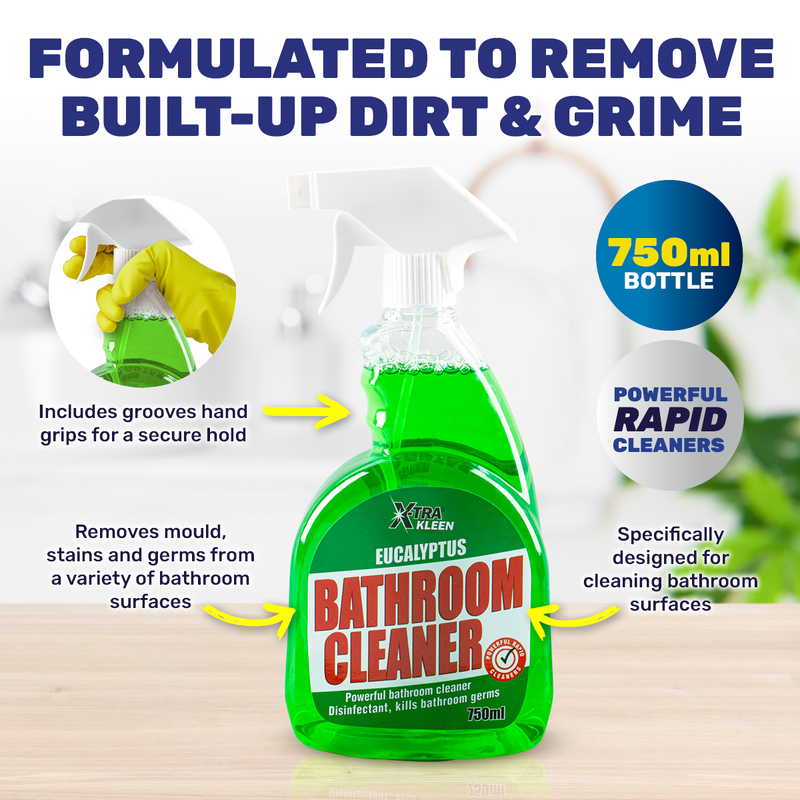 X-TRA KLEEN?? A powerful, anti-bacterial bathroom cleaner designed to clean and disinfect bathroom surfaces, removing dirt, bacteria and bathroom germs. Keep your bathroom sparkling and germ free using this amazingly powerful spray.