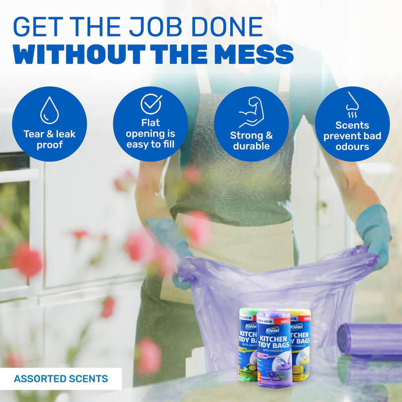 Xtra Kleen?? Tear and leak proof, these strong and durable scented tidy bags are ideal for the kitchen, laundry, garage, work and office.