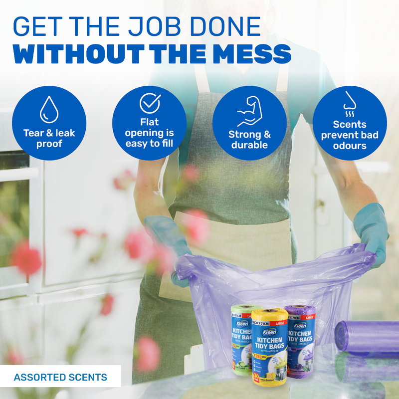 X-TRA KLEEN?? Kitchen tidy bags that are scented to help eliminate nasty odours. Brightly coloured with sturdy handles they are ideal to use in your kitchen, laundry, garage or office.