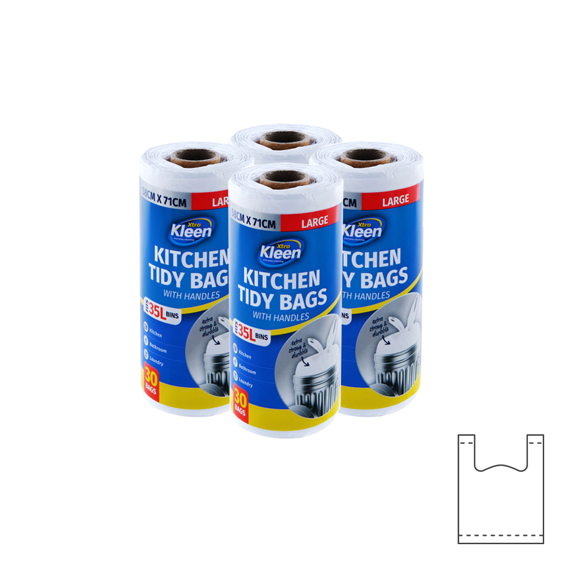 X-tra Kleen?? These kitchen tidy bags are leak and tear proof, and have the added bonus of tie handles. Ideal to use throughout your home, business and work environments.