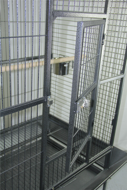 This fantastic, spacious Parrot Bird Cage with an open top is definitely the most comfortable roost for your little one. Our birdcage is made of heavy-duty wrought Iron with vein powder coated frame so it is tough and durable. The dimension of this cage is 100 cm x 78 cm x 180 cm, which is perfect for medium and large size birds and parrots. You can convert the cage to open roof easily and let your bird perch up high. This brand new Open Top bird cage comes with seed skirts all around the cage, a large access door, 3 side small access windows for stainless steel food/water trays, 2 timber perches (one with 2 stainless steel feeder for the open roof), and removable tray for easy clean up. The 4 castor wheels are equipped on the matching stand to provide great mobility.